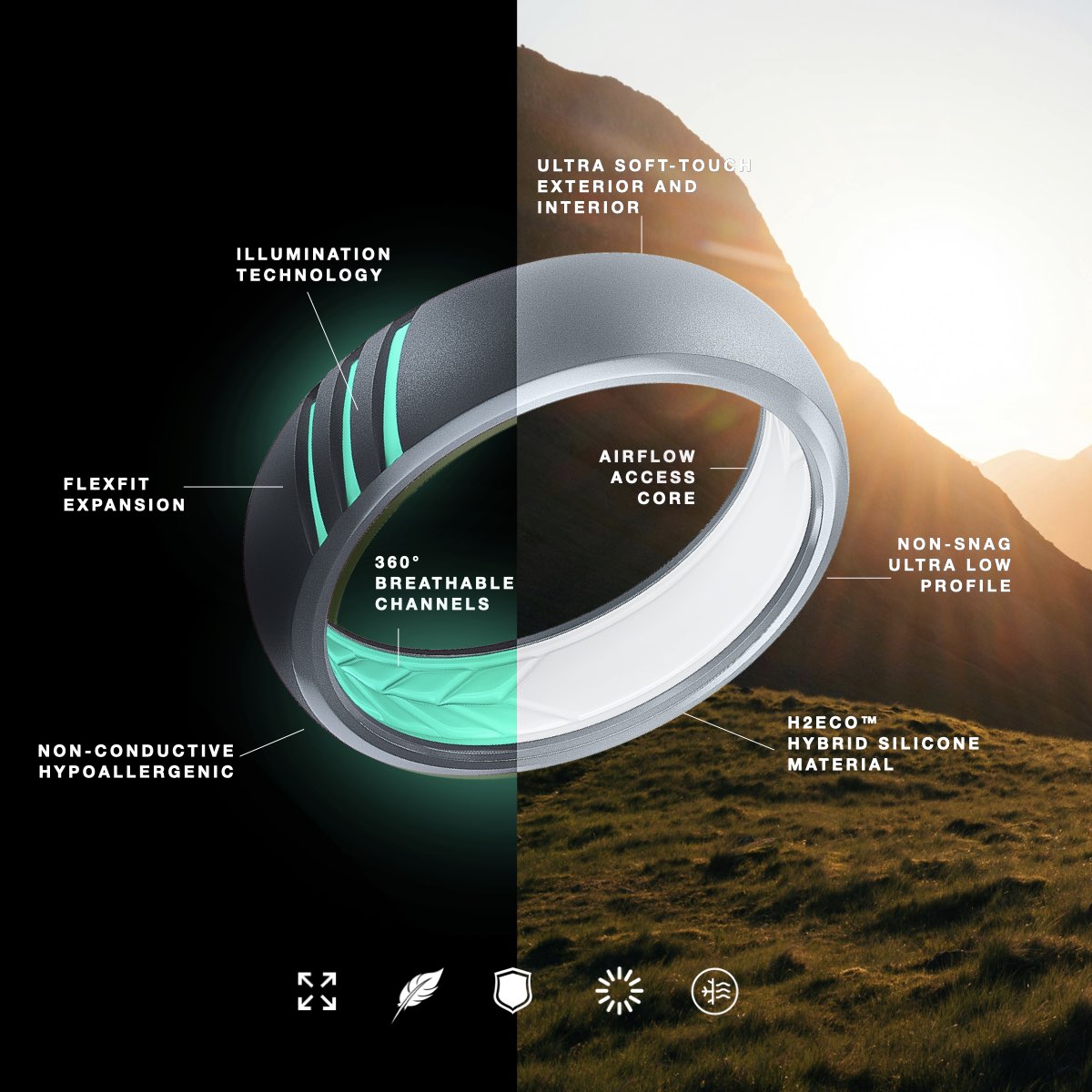 Rings reimagined. Traditional hard metal jewelry is unsafe uncomfortable and unpractical to wear all day everyday. Our rings are engineered to be worn 24/7 worry free no matter where life takes you. Surf trips to Maui, meetings in NYC, camping in Yosemite, or even playing in an NFL game. We have you covered and looking great through every leg of the trek.