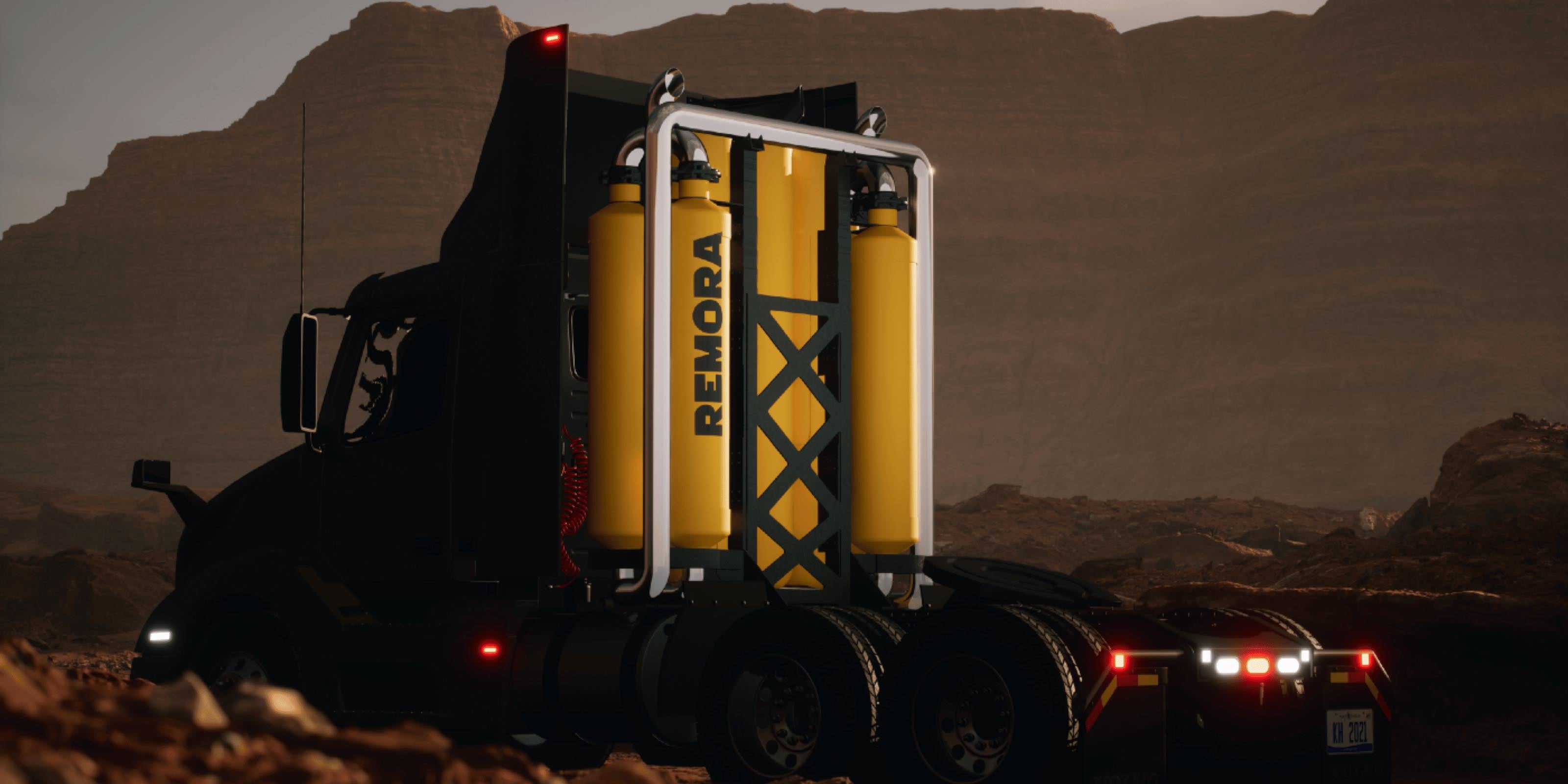Remora captures CO₂ from semi-truck tailpipes as they drive, with the CO₂ destined for long-term storage.
